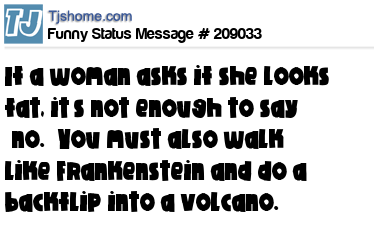 X says If a woman asks if she looks fat, it’s not enough to say “no.” You must also walk like Frankenstein and do a backflip into a volcano.