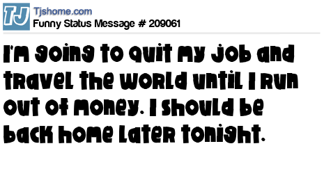 X is I'm going to quit my job and travel the world until I run out of money. I should be back home later tonight.