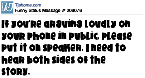 X is If you're arguing loudly on your phone in public, please put it on speaker. I need to hear both sides of the story.