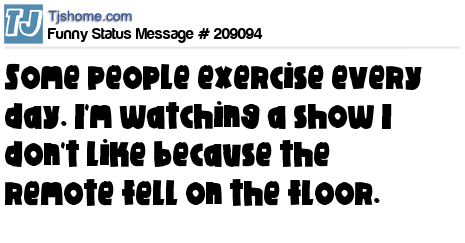 - # 206241 Some of my friends exercise every day. Meanwhile, I’m watching a show I don’t like because the remote fell in the floor.