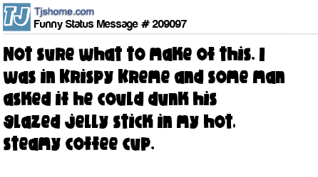 X says Not sure what to make of this. I was in Krispy Kreme and some man asked if he could dunk his glazed jelly stick in my hot, steamy coffee cup.