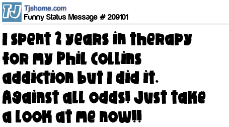 - # 152813 I spent 2 years in therapy for my Phil Collins addiction but I did it. Against all odds. Just take a look at me now.