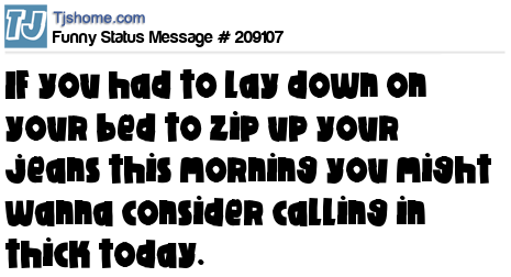 X says IF you had to lay down on your bed to zip up your jeans this morning you might wanna consider calling in thick today.