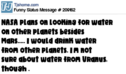 X says NASA plans on looking for water on other planets besides Mars..... I would drink water from other planets. I’m not sure about water from Uranus, though .