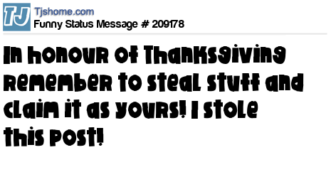 X says In honour of Thanksgiving remember to steal stuff and claim it as yours! I stole this post!
