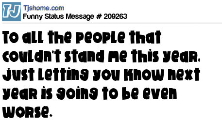 X is To all the people that couldn't stand me this year, just letting you know next year is going to be even worse.