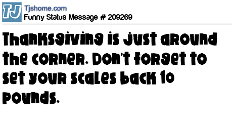 - # 190258 Don't forget to set your bathroom scale back 15 pounds before eating your Thanksgiving dinner. Happy Thanksgiving :-)