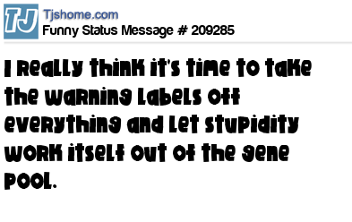 - # 95875 If people came with warning labels they wouldn't be too much different than drug labels: May cause drowsiness, persistent headaches, may reduce the urge to live..... If symptoms persist apply the nearest foot to their ass.