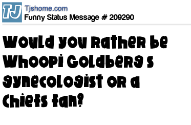 X says Would you rather be Whoopi Goldberg’s gynecologist or a Chiefs fan?