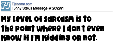 - # 128923 My level of sarcasm has reached a dangerous level where even I don't know if I'm kidding or not.