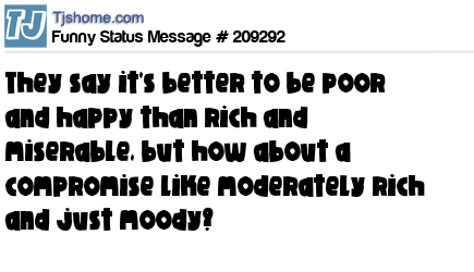 X is They say it's better to be poor and happy than rich and miserable, but how about a compromise like moderately rich and just moody?