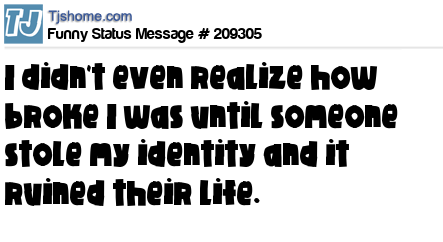- # 71111 you know you're totally screwed when the guy who stole your identity begs you to take it back."