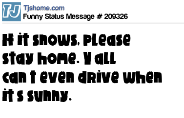 - # 207497 If it actually snows, please stay home. Y’all can’t even drive when it’s sunny. Lol