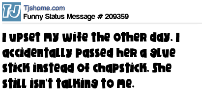 - # 202680 Accidentally gave my wife a glue stick instead of chapstick. Shestill isn't talking to me.