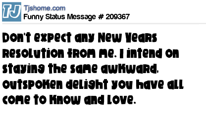 X is Don't expect any New Years resolution from me. I intend on staying the same awkward, outspoken delight you have all come to know and love.