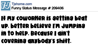 X is If my coworker is getting beat up, better believe I'm jumping in to help. Because I ain't covering anybody's shift.