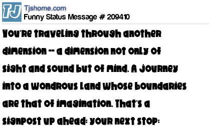 - # 190874 You unlock this door with the key of imagination. Beyond it is another dimension a dimension of sound, a dimension of sight, a dimension of mind. Youre moving into a land of both shadow and substance, of things and ideas. Youve just crossed into Facebook!