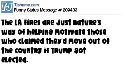 X says The LA fires are just nature's way of helping motivate those who claimed they'd move out of the country if Trump got elected.