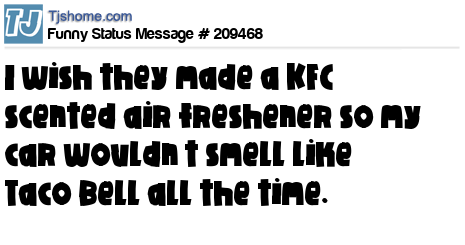 X says I wish they made a KFC scented air freshener so my car wouldn’t smell like Taco Bell all the time.