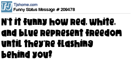 - # 209745 n't it funny how red, white, and blue represent freedom until they're flashing behind you.