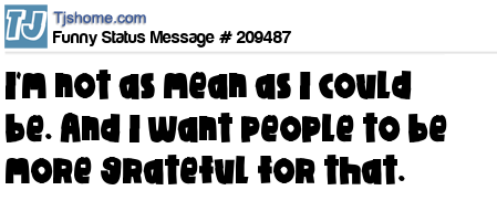X is I'm not as mean as I could be. And I want people to be more grateful for that.