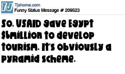 X says So, USAID gave Egypt $6million to develop tourism. It's obviously a pyramid scheme.