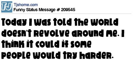 X is Today I was told the world doesn't revolve around me. I think it could if some people would try harder.