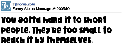 X says You gotta hand it to short people. They're too small to reach it by themselves.
