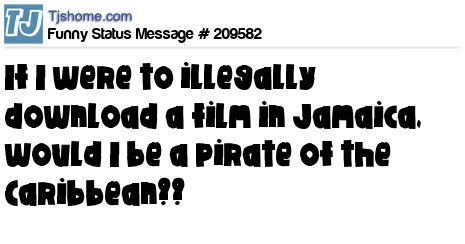 - # 164939 If I were to illegally download a film in Jamaica, would I be a Pirate of the Caribbean?