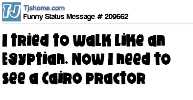 X says I tried to walk like an Egyptian. Now I need to see a Cairo practor