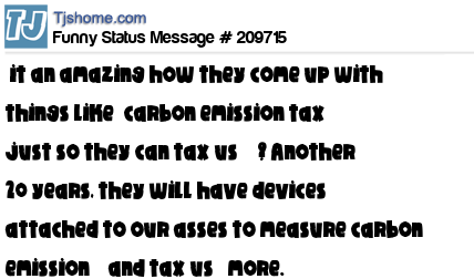 X is it an amazing how they come up with things like “carbon emission tax” just so they can tax us? Another 20 years, they will have devices attached to our asses to measure carbon emission  and tax us more.