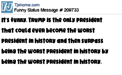 X is It's funny, Trump is the only president that could ever become the worst president in history and then surpass being the worst president in history by being the worst president in history.