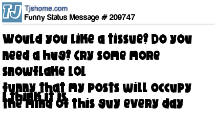 X is Would you like a tissue? Do you need a hug? Cry some more snowflake LOL