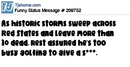 X is As historic storms sweep across Red States and leave more than 30 dead, rest assured he's too busy golfing to give a s***.