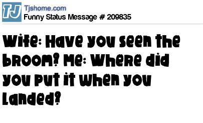 X is Wife: Have you seen the broom? Me: Where did you put it when you landed?