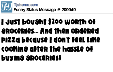 X is I just bought $200 worth of groceries... And then ordered pizza because I don't feel like cooking after the hassle of buying groceries!