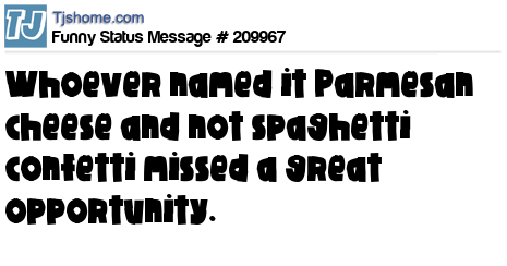 X is Whoever named it Parmesan cheese and not spaghetti confetti missed a great opportunity.
