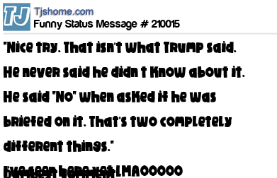 - # 210008 Nice try. That isn't what Trump said. He never said he didn’t know about it. He said "No" when asked if he was briefed on it. That's two completely different things.