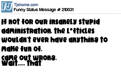 X is If not for our insanely stupid administration, the l*fticles wouldn't ever have anything to make fun of.
