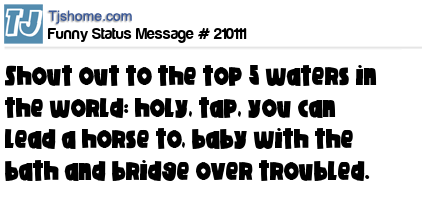 X says Shout out to the top 5 waters in the world: holy, tap, you can lead a horse to, baby with the bath and bridge over troubled.