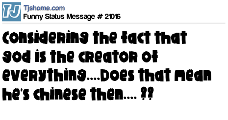 X says Considering the fact that god is the creator of everything....Does that mean he's chinese then.... ??