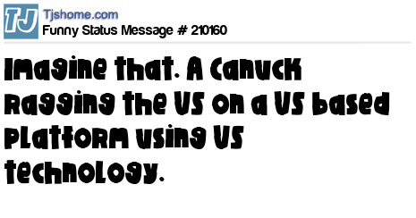 X says Imagine that. A Canuck ragging the US on a US based platform using US technology.