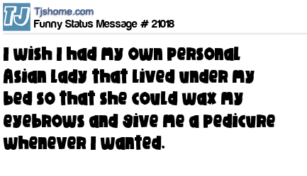 X is I wish I had my own personal Asian lady that lived under my bed so that she could wax my eyebrows and give me a pedicure whenever I wanted.