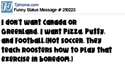X says I don't want Canada or Greenland. I want Pizza, Pu$$y, and Football.(Not soccer. They teach roosters how to play that exercise in boredom.)