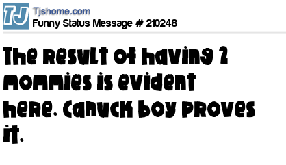 X says The result of having 2 mommies is evident here. Canuck boy proves it.