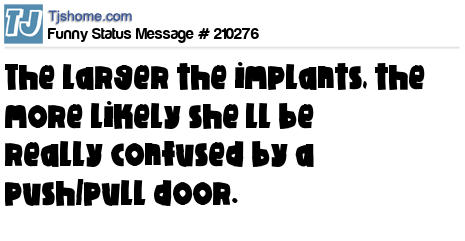 - # 147477 The larger the implants, the more likely she’ll be confused by a push/pull door.