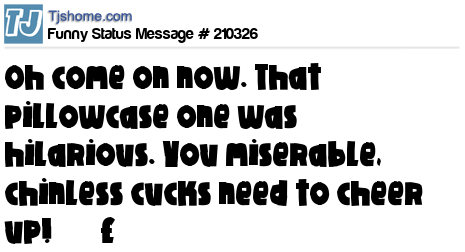X is Oh come on now. That pillowcase one was hilarious. You miserable, chinless cucks need to cheer up! 🤣