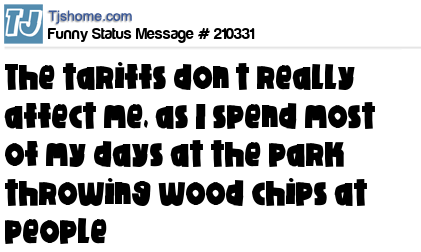 X says The tariffs don’t really affect me, as I spend most of my days at the park throwing wood chips at people
