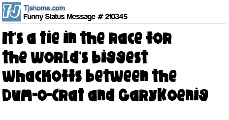 X says It's a tie in the race for the world's biggest whackoffs between the Dum-o-Crat and GaryKoenig