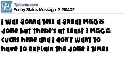 X is I was gonna tell a great M^G^ joke but there's at least 3 M^G^ cucks here and I don't want to have to explain the joke 3 times 🤓